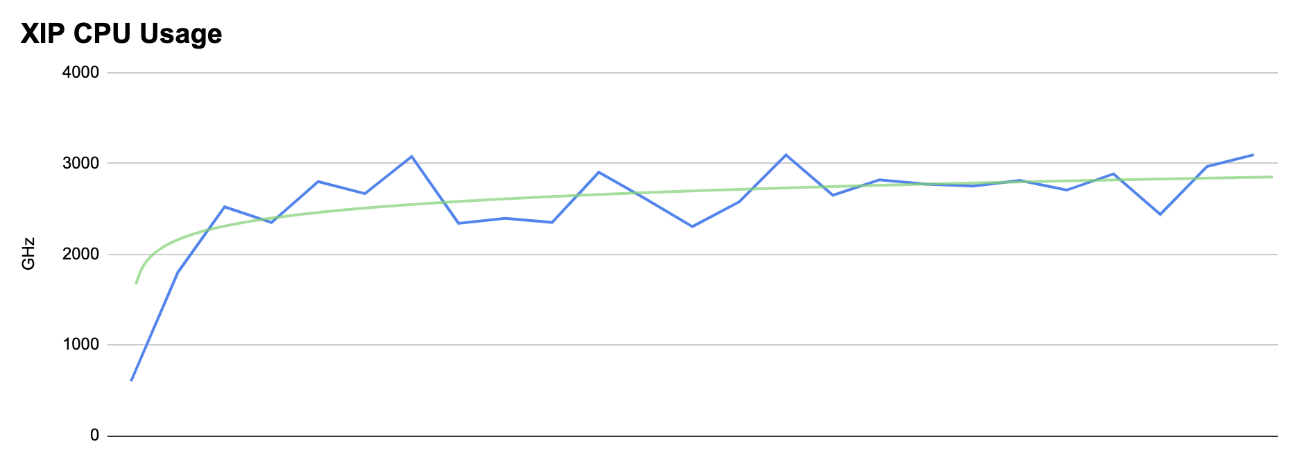 For a look at the power curve (and to show that there is no throttling of the MacBook Pro over this period (I never found any throttling over longer periods by the way) here’s the usage curve.