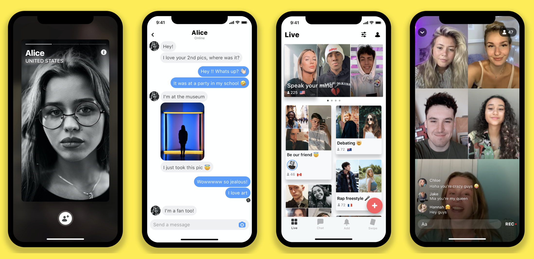 So what is Yubo exactly? It’s a social media app that wants to reverse the current trend of social networks — you can’t follow other users, you can’t like content.