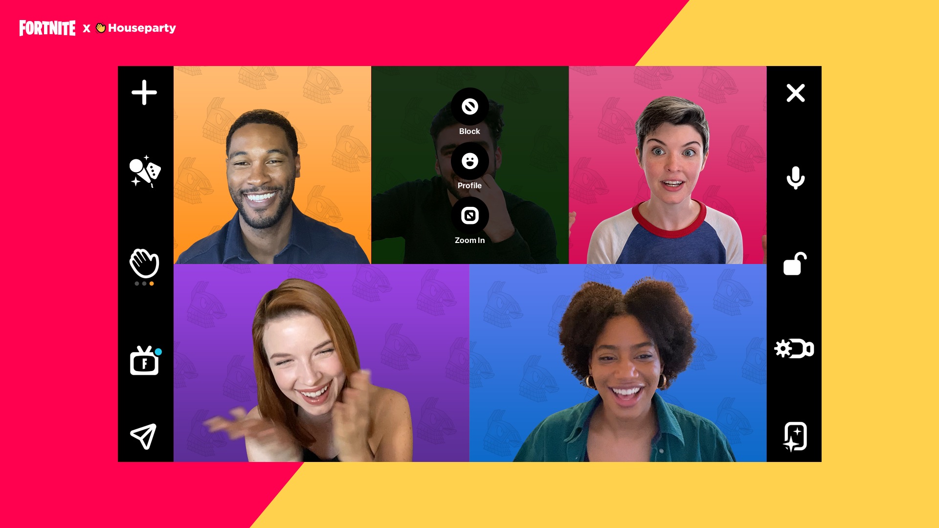 Users will need to install Houseparty on an Android or iOS device and connect the app with their Epic Games account. From there, the video chat will be integrated into the game. Images are cropped tight on the player’s face and a virtual background is added, à la Zoom. Given the all-ages nature of the game, there are some additional safety features on board, including the ability for parents to toggle off the feature in Fortnite’s settings.