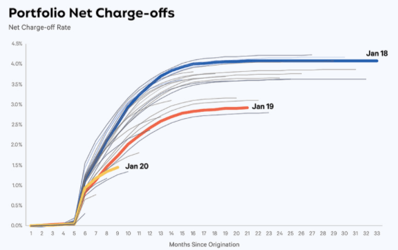 So we should see improving loss rates, yeah? And we do. The company has a very pretty chart up top in its IPO filing that makes its model’s improvement appear staggeringly good over time: