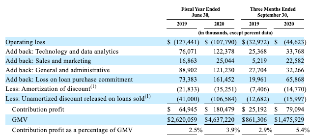 - What does the unicorn have to say about contribution profit from its loans business?