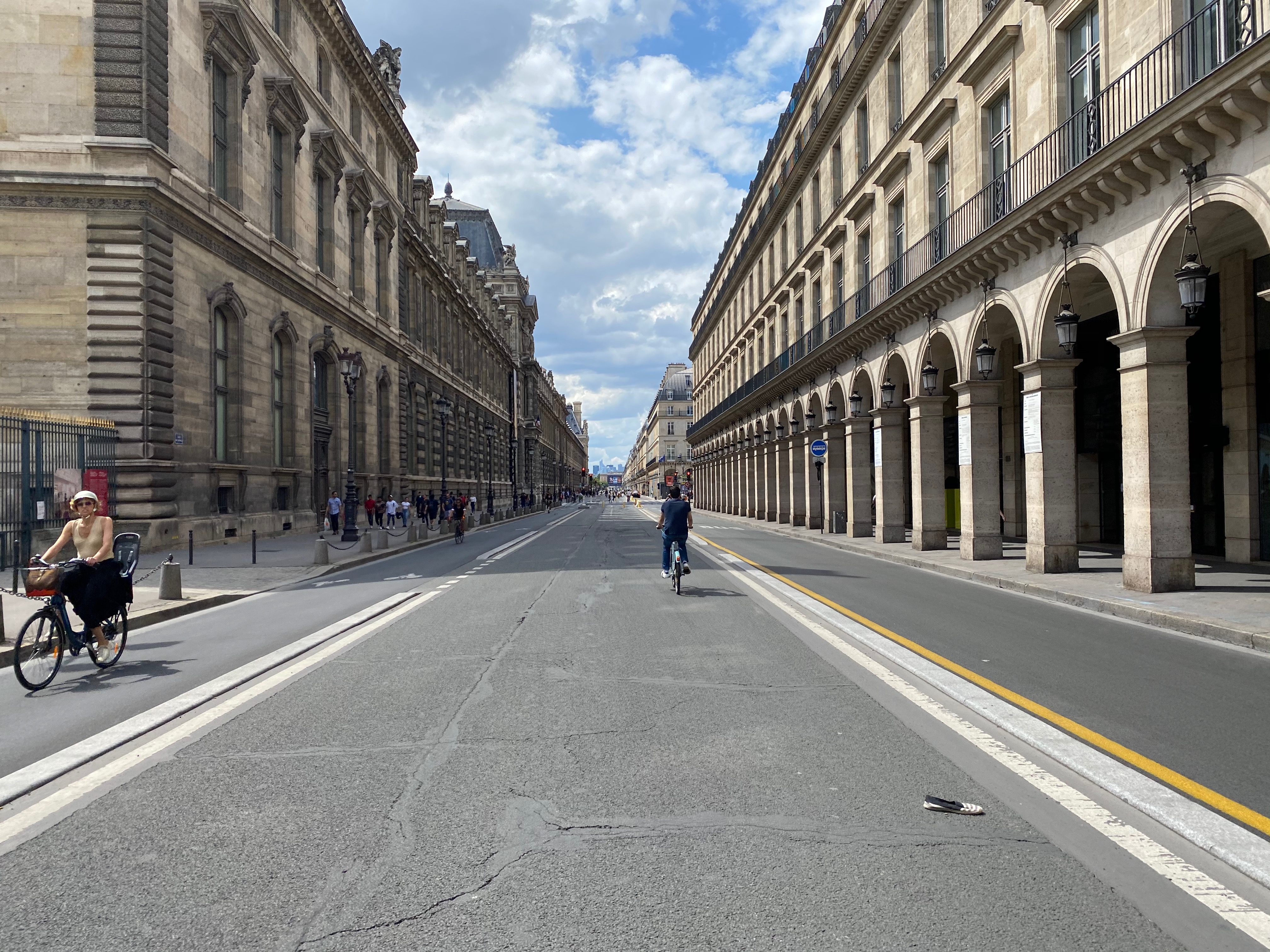 For instance, the Rue de Rivoli used to be a major road that connects the Champs-Elysées to Bastille. Now, one-third of the road is dedicated to buses and two-thirds are reserved for bikes and e-scooters.
