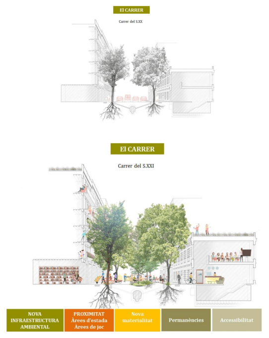 “It will be necessary to generate walking spaces, spaces that facilitate spontaneous children’s play and comfortable living spaces,” it writes in a press release [translated from Catalan]. “The design will have to allow for flexible spaces that can accommodate various occasional uses such as fairs, concerts and other acts. All with a feminist vision, prioritizing children and the elderly and promoting services and local trade.”