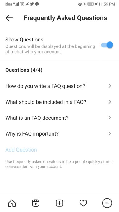 Instagram is developing a new product, Frequently Asked Questions (FAQ), that will allow people to start conversations with businesses or creators’ accounts by tapping on a commonly asked question within a chat. Those who already have the feature available report they’re able to create up to four questions that can optionally be displayed at the beginning of a conversation with other users.