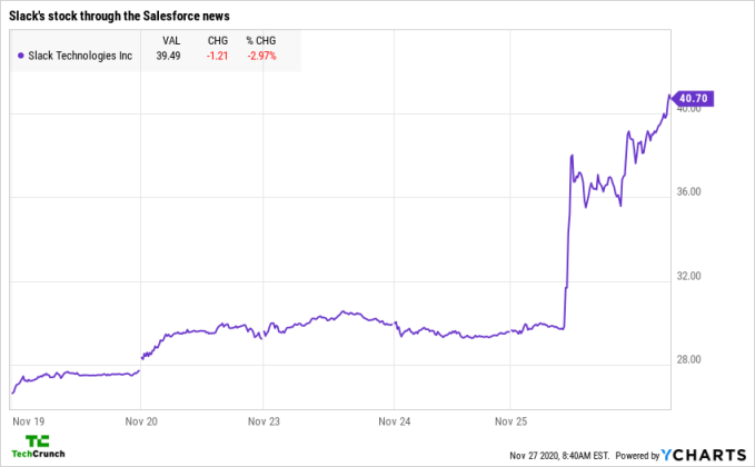 Here’s a chart of Slack’s value before and after the Salesforce news, just to give you a taste of how big an impact the reporting had:
