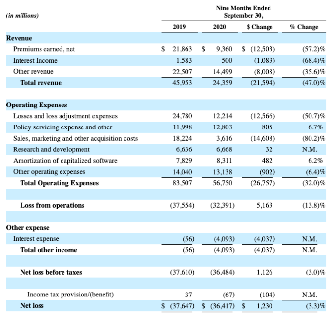 So Lemonade has shaken up its business, cutting its revenues and tidying its economics. The impact has been sharp, with the company’s GAAP revenues falling from $17.8 million in the year-ago quarter to $10.5 million in Q3 2020.