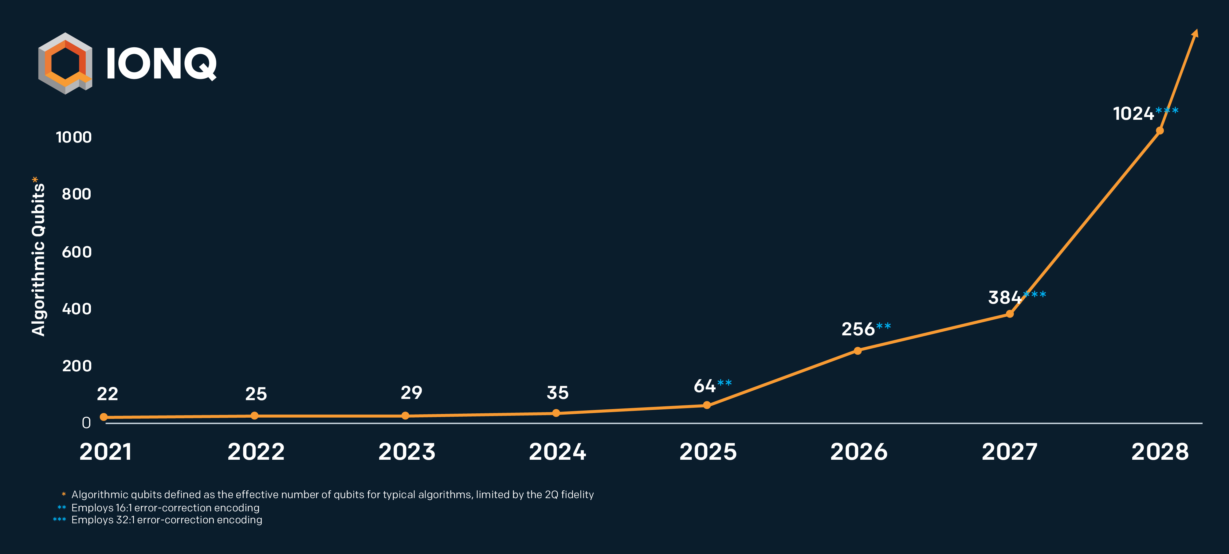 Once IonQ is able to get to 32 of these algorithmic qubits — its current systems have 22 — it’ll be able to achieve a quantum volume of 4.2 billion instead of the 4 million it claims for its current system.
