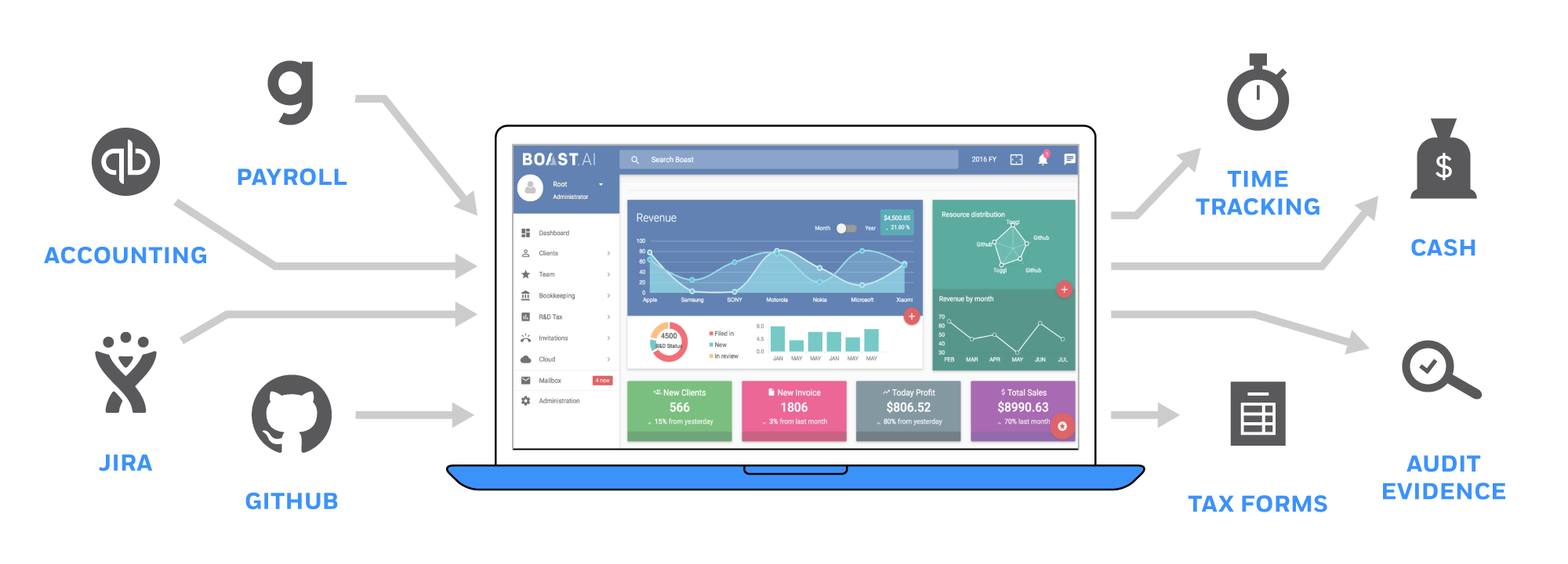 So after doing some of that manual work, Boast can now automatically pull in data using tech tools like JIRA and GitHub and a company’s financial tools like QuickBooks, Gusto and (soon) ADP. It then uses its algorithms to cluster this data, figure out how much time employees spend on projects that would qualify for a tax credit and automate the tax filing process. Throughout the process — and to interact with the government if necessary — the company keeps humans in the loop.