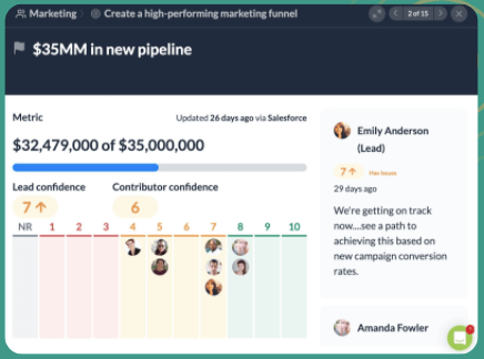 In that vein, while Koan offers the OKR tools you’d imagine, it also has a check-in feature that helps individuals report their performance and progress in a manner that is aggregated across teams to provide a clear picture of how individuals across teams are feeling about any particular KR. If individual workers keep updating their progress, the company’s picture of how it is progressing toward goals will sharpen.