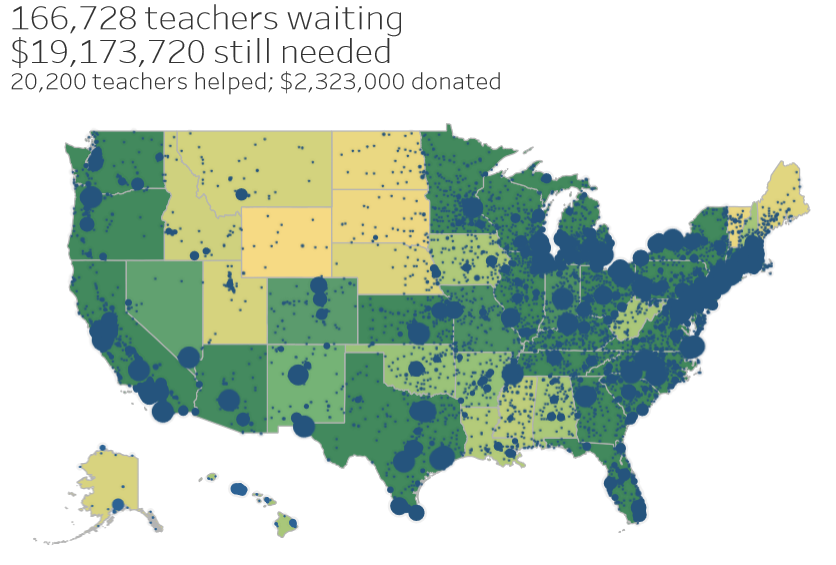 Yet even though the idea of hooking up more than 150,000 teachers with monitors seems gargantuan, it must be pointed out that in the few months since its humble beginnings, Two Screens for Teachers has rustled up more than 20,000, for both big cities and tiny towns. One order of magnitude is nothing!