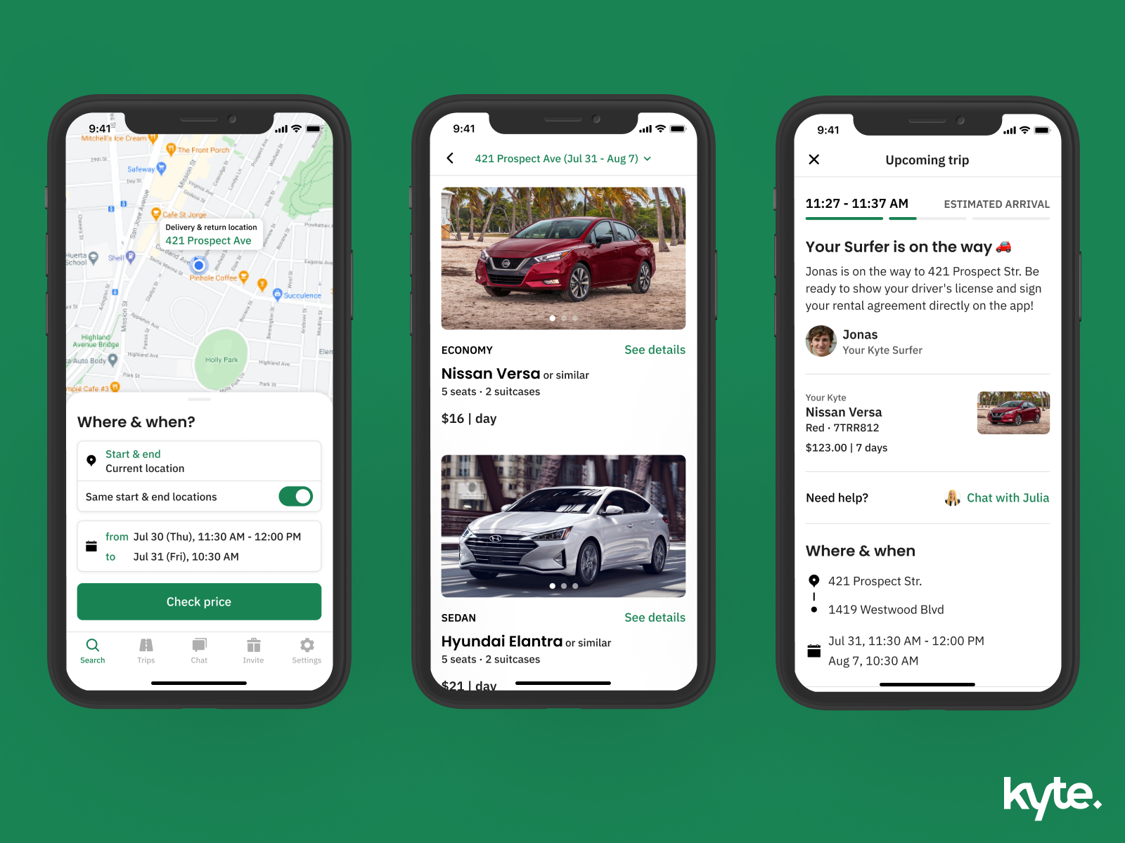 Consumers who didn’t want to own a car, but needed one for a few days or weeks had two options: head to a car rental center, likely located at an airport or outside the city center, or turn to a car-sharing platform. The three friends — all German immigrants whose paths had crossed in San Francisco — decided to pool their collective expertise from BMW, McKinsey and Uber and launch Kyte to create a new kind of car rental experience without taking on the costly business of owning and maintaining large fleets.