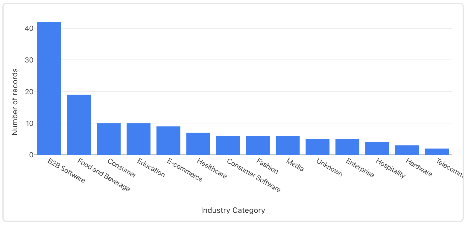 As expected, the industry that received the highest number of RBI loans was B2B software, equating to 42 companies of 134, or 31.3% of all investees. Companies within the “B2B software” category included those who were targeting any type of business customer, including large enterprises, small businesses, independent creators, entrepreneurs, retailers or others.