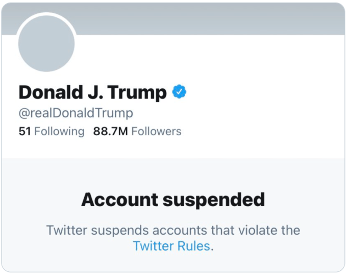 After close review of recent Tweets from the @realDonaldTrump account and the context around them we have permanently suspended the account due to the risk of further incitement of violence.https://t.co/CBpE1I6j8Y