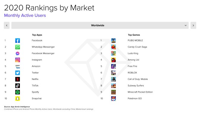 With many stuck inside due to COVID-19 lockdowns and quarantines, mobile games that offered social interaction boomed. Among Us, for example, became a breakout game in several markets in 2020, including the U.S.
