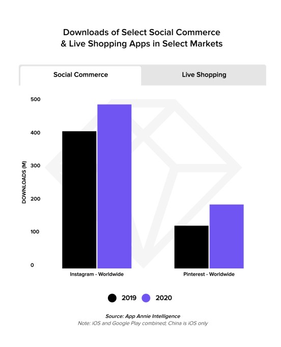 Social shopping was a big trend, with global downloads of Pinterest and Instagram growing 50% and 20% year-over-year, respectively.