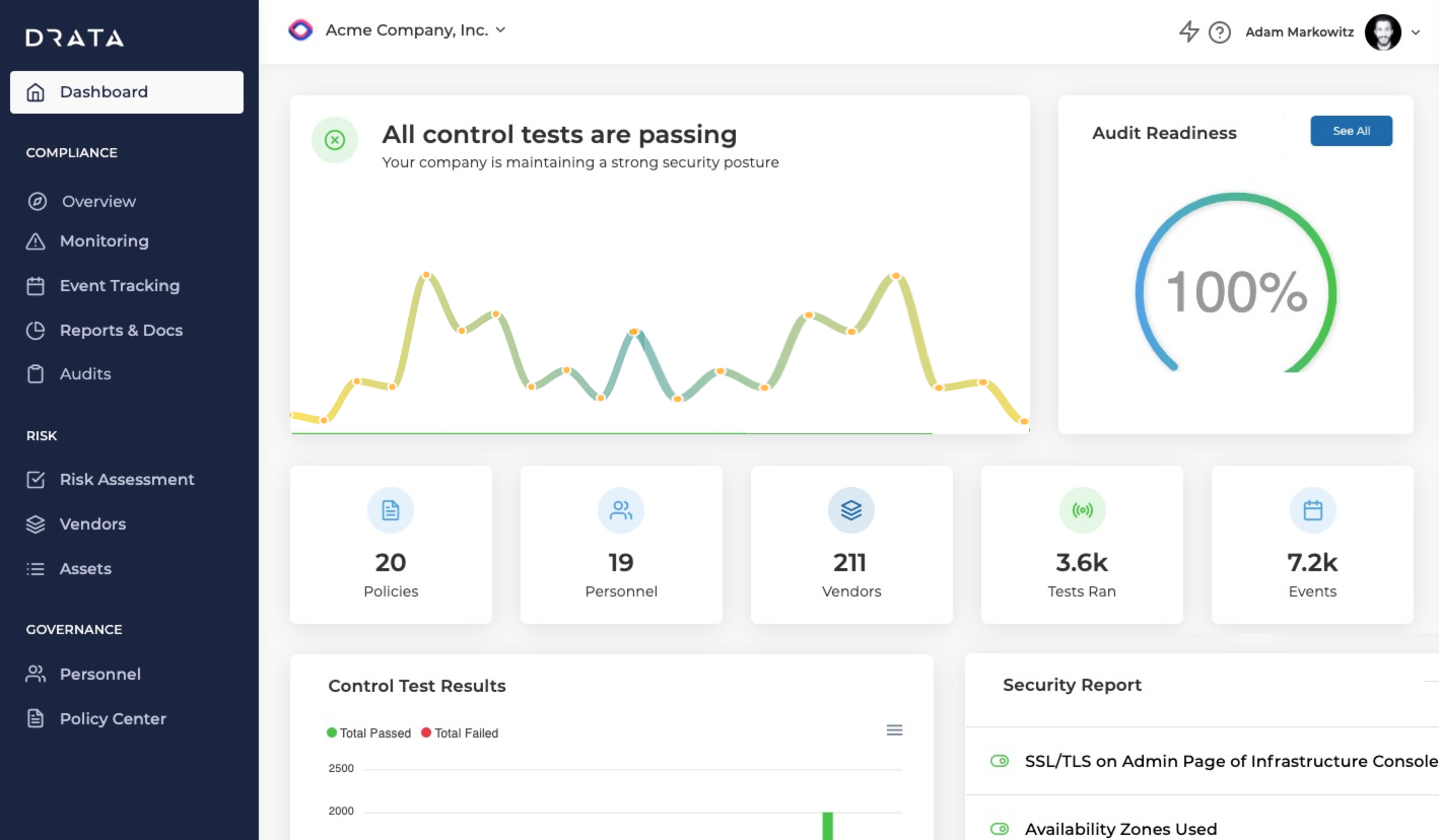 Drata co-founder and CEO Adam Markowitz worked on the space shuttle engines after graduating from college, and then launched his own startup, Portfolium, when that program ended. Portfolium, which helped students showcase their work in the form of — you guessed it — a portfolio, eventually sold to Instructure in 2019, where Markowitz stayed on until he launched Drata last June, together with a group of former Portfolium founders and engineers. Besides Markowitz, the co-founders include CTO Daniel Marashlian and CRO Troy Markowitz. It was the team’s experience seeing companies go through the audit process, which has traditionally been a drawn-out and manual process, that led them to look at building their own solution.