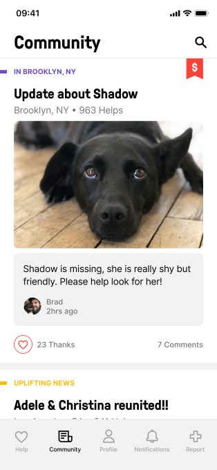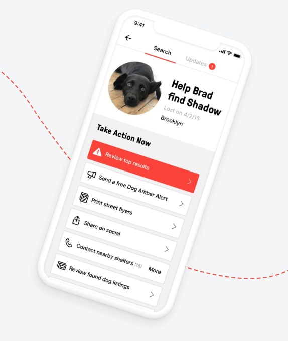 Shadow claims to use A.I. technology to match the photograph of the missing dogs to possible matches from nearby shelters or the web. (Note: A competitor of Shadow’s claims this is not true. The company reached out to us and we published its comments. We also asked Shadow to clarify its tech, given the claims. The competitor then asked for their name to be removed from the article, after arguing it’s clear the Shadow app relies on its manual matching system. Shadow disputes the competitor’s claim. See details below.)