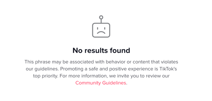 At the time of writing, a search on the platform for ‘#blackoutchallenge’ returns no user content but displays a warning that the phrase “may be associated with behavior or content that violates our guidelines”.