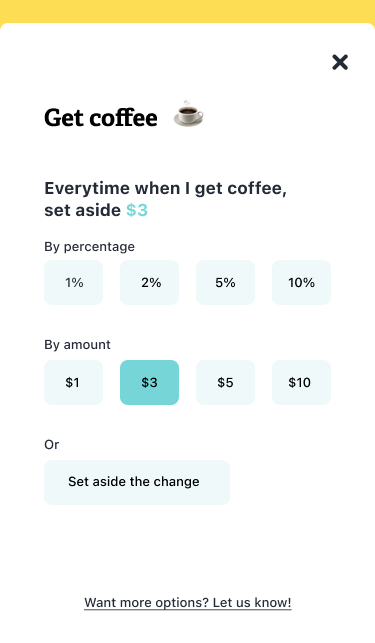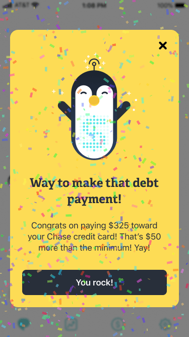 As those rules apply, money is saved and a little progress bar fills. The app rewards you with rainbow confetti as you achieve, also similar to some mobile gaming experiences.