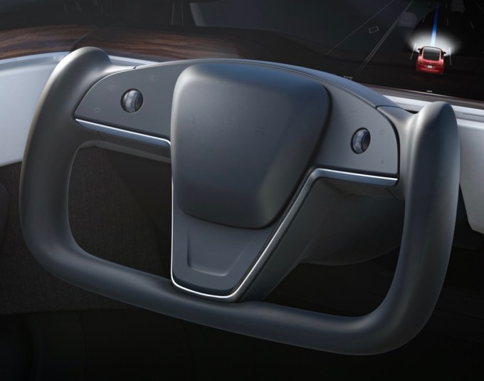 An airplane-style steering “yoke” (similar to the one spotted in prototypes of Tesla’s new Roadster) instead of a standard round wheel.