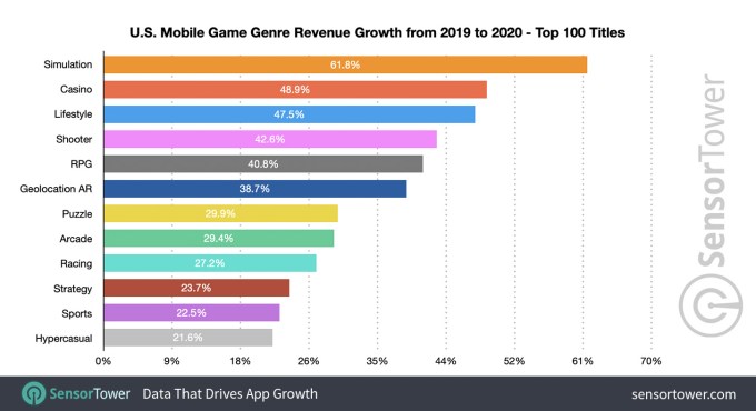- U.S. consumer spend in mobile simulation games up 61.8% in 2020, reports Sensor Tower. Top titles included Roblox and Township by Playrix.