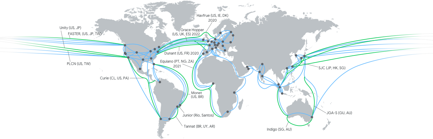 In addition, Google is also building the Equiano cable from South Africa to Portugal. This cable is supposed to go online later this year.