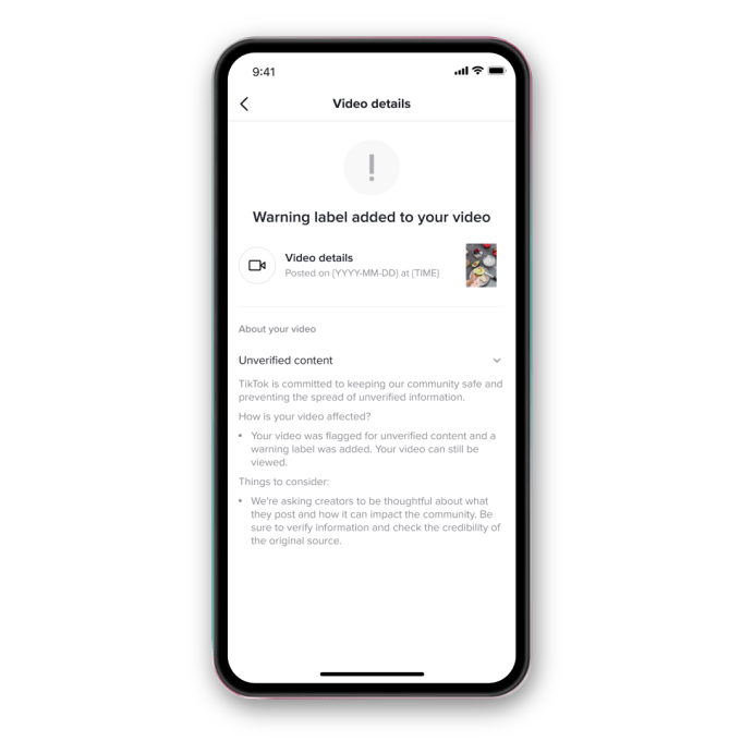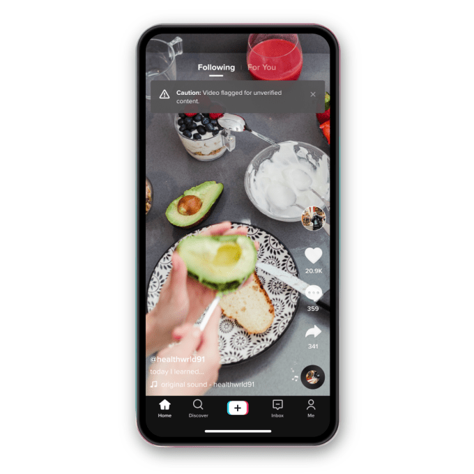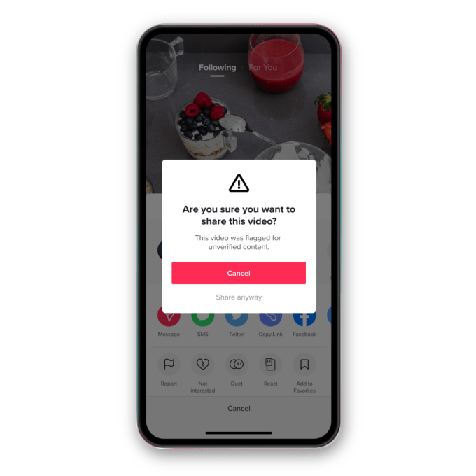 TikTok this morning announced a new feature that aims to combat the spread of misinformation on its platform. In addition to removing videos that are identified to be spreading false information, as verified by fact-checking partners, the company says it will now also flag videos where fact checks are inconclusive. These videos may also become ineligible for promotion into anyone’s For You page, TikTok notes.