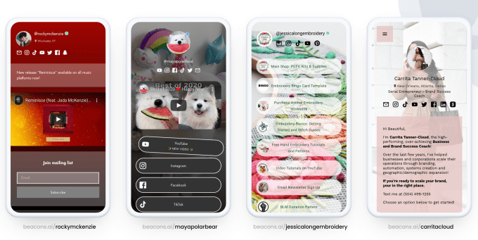 Today, there are a number of website builders aimed at creators who want to point fans to a dedicated landing page from their social media profile. If you’ve spent any time on TikTok or Instagram, you’ve likely come across one of these simplified “link in bio”-style websites — like those hosted by Linktree, for example. A new startup called Beacons is now entering this market with the goal of making “link in bio” websites even more powerful. Its website builder offers creators an expanded set of tools to monetize their community, including through donations, sales, paid requests, affiliate shopping and more.