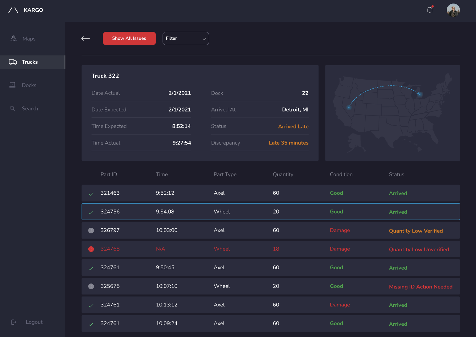 Lurye said the platform has allowed its customers to reduce loading time by more than 40%. As more loading docks are connected to the platform, the predictive feature that Kargo built improves and will allow customers to make informed forecasts of whether a shipment will be late or missed.