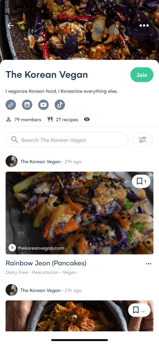 Whisk has also been working more recently to expand its recipe communities to serve as a home for curators and creators alike by allowing them to point to their websites, if they have one, or link out to their social media profiles, including Instagram, YouTube and, of course, TikTok.