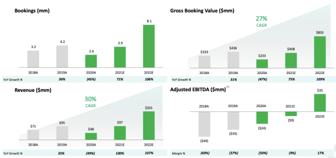 With travel set to pick back up, Rover expects to get back on track this year. It anticipates 3.9 million bookings in 2021 and revenues recovering to $97 million off of $408 million in gross bookings. After that the numbers, per Rover’s projections, keep going up. Rover also expects to improve from a modest, $9 million adjusted EBITDA loss in 2021 to profit in 2022.