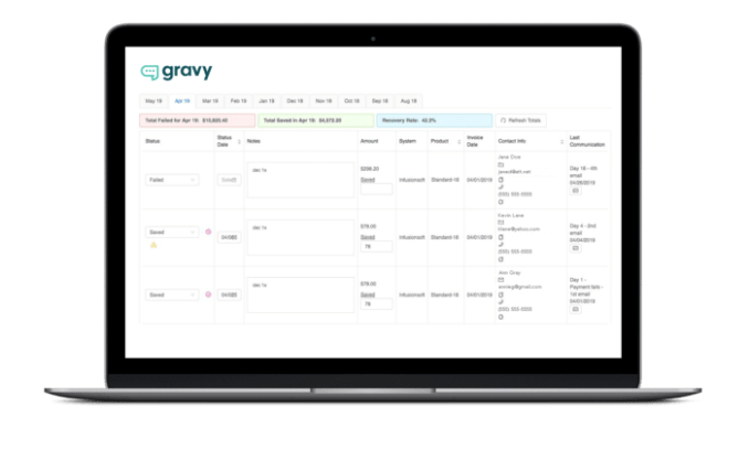 Gravy, a startup helping subscription-based businesses recover failed payments, has raised $4.5 million in Series A funding for its specialized combination of technology and a human workspace that works to reacquire customers lost to what’s known as “involuntary churn.” That means the customer didn’t choose to end their subscription, but — for any one of hundreds of possible reasons — their credit card payment failed.