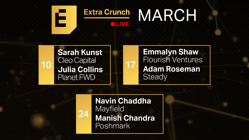 Today, I’m thrilled to announce the March slate for Extra Crunch Live. (Registration info for these events is at the bottom of the post.)