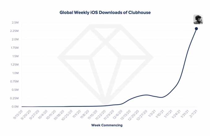 Clubhouse, meanwhile, hasn’t officially shared its total number of downloads or registered users, but CEO Paul Davison revealed in January the app had grown to 2 million weekly active users — which means the app’s monthly active user figure and total registered user count would be much higher. Other estimates have put the app’s registered user base in between 6 million and 10 million (the latter citing unnamed sources.)