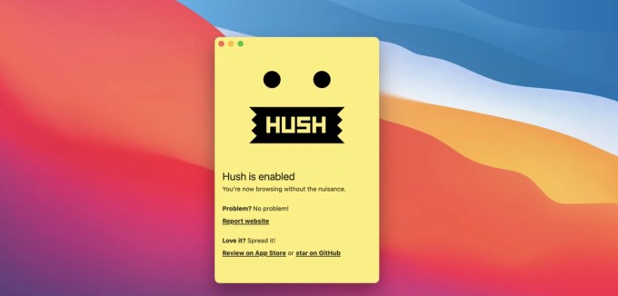 Hush, a recently launched Safari ad blocker for Mac, iPhone and iPad, does more than just block ads. The app also works to block other invasive trackers and those annoying cookie warnings that now pop up everywhere due to GDPR laws. (it actually doesn’t consent or deny the “accept cookies?” requests — it just blocks the scripts and elements on the website. It doesn’t interact with the site or click any buttons.
