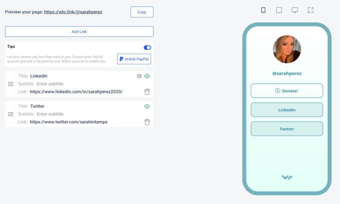 A number of online creators and influencers have adopted mobile-friendly “link in bio” websites, like Linktree, to point their fans to their social profiles or other content they want to promote. Today, live streaming software company Streamlabs launched its own product in this market with its new mobile website builder Willow. Its tool differentiates itself from others in this space by integrating a tipping feature directly on the landing page.