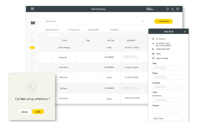 In some cases that is not hugely efficient, since it only alerts the person you are calling, not a whole team, and sometimes the person you are speaking with is not the person who needs the update most. But, it also remains a key way to connect with customers especially when there are delays. The phone service that the company offers integrates with other details about a job, letting the call become part of the bigger work log for everyone else to see.