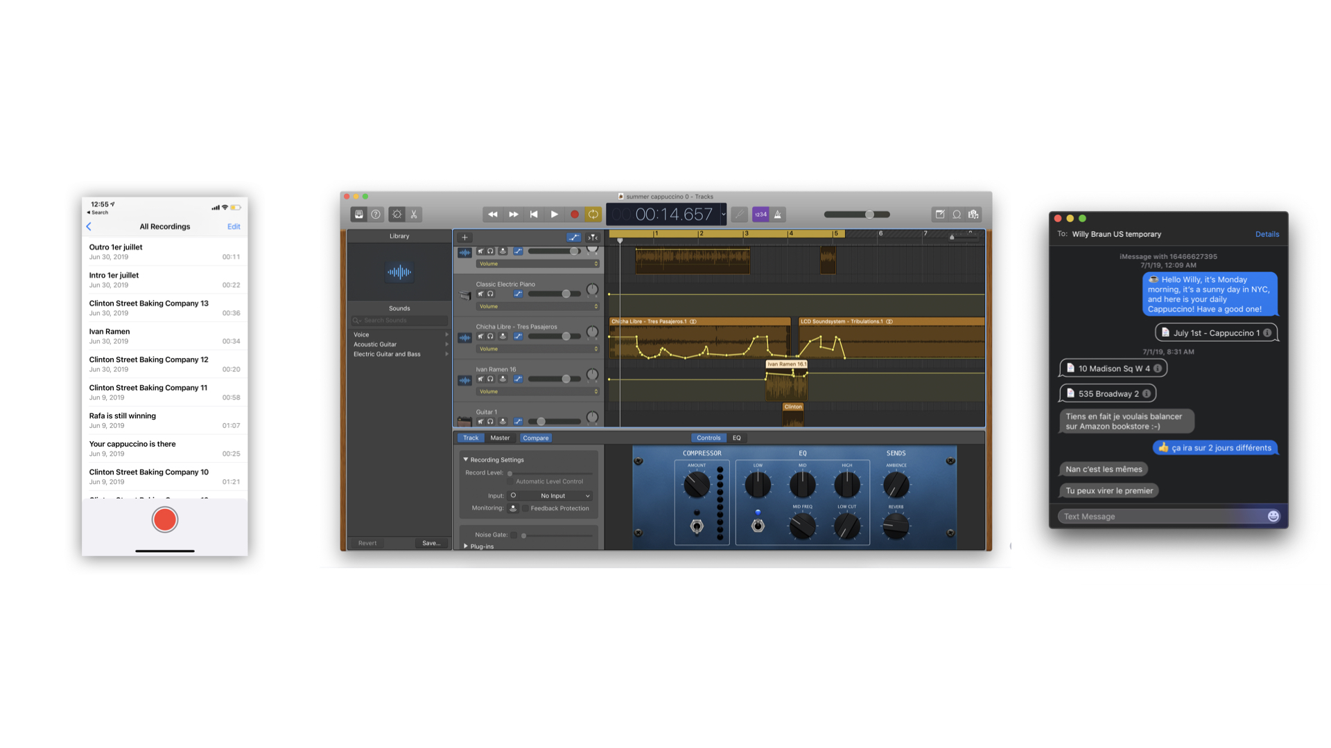 Every night, Olivier Desmoulin would fire up GarageBand and create a mix of all voice memos. In the morning, he would send a message to the group conversation on WhatsApp and write: “Hey, your cappuccino is here.”
