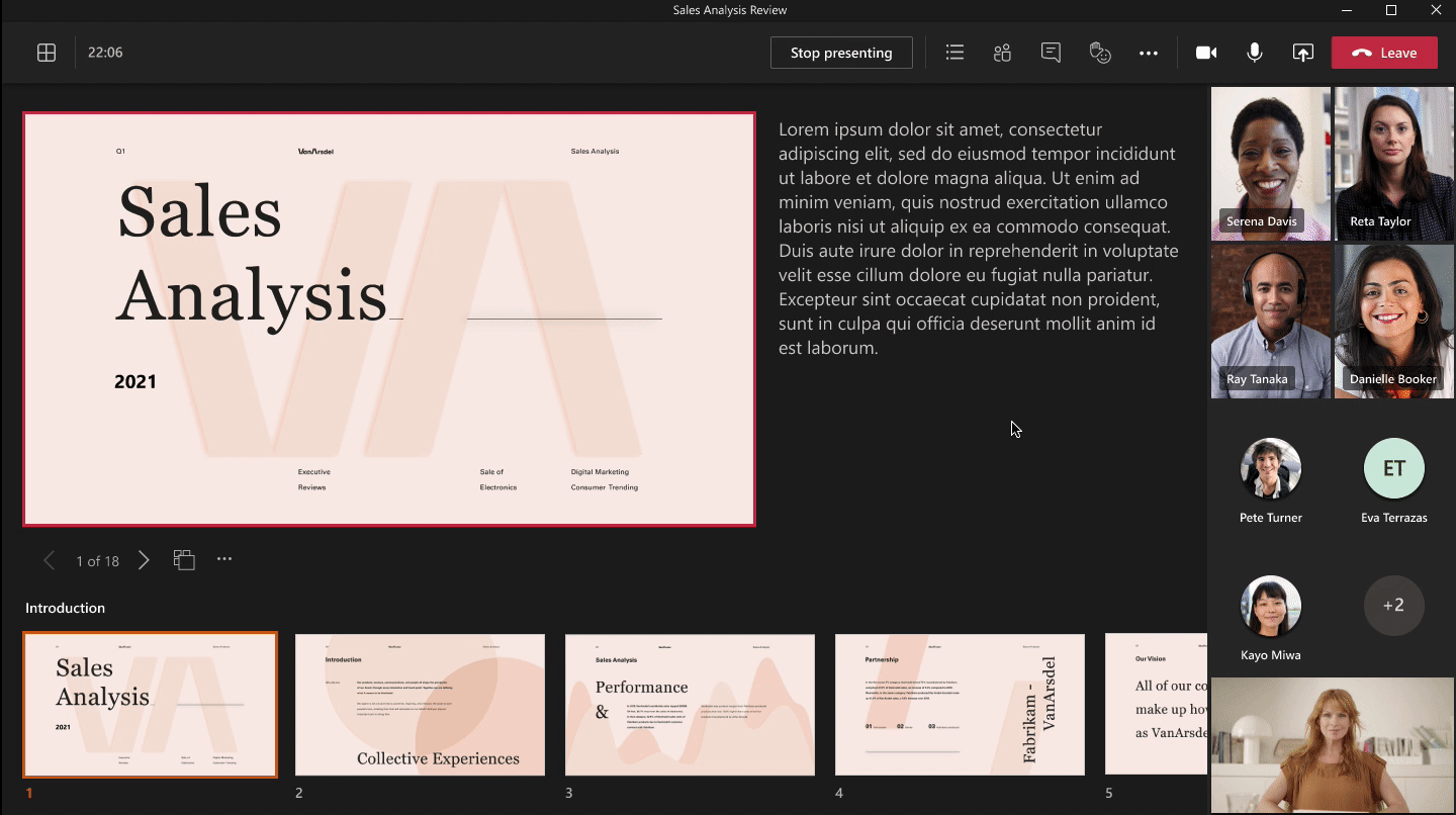 Another new view meant to visually spice up your meetings is the “Dynamic view.” With this, Teams will try to arrange all of the elements of a meeting “for an optimal viewing experience,” personalized for each viewer. “As people join, turn on video, start to speak, or begin to present in a meeting, Teams automatically adjusts and personalizes your layout,” Microsoft says. What’s maybe more useful, though, is that Teams will put a gallery of participants at the top of the screen to help you maintain a natural eye gaze (without any AI trickery).