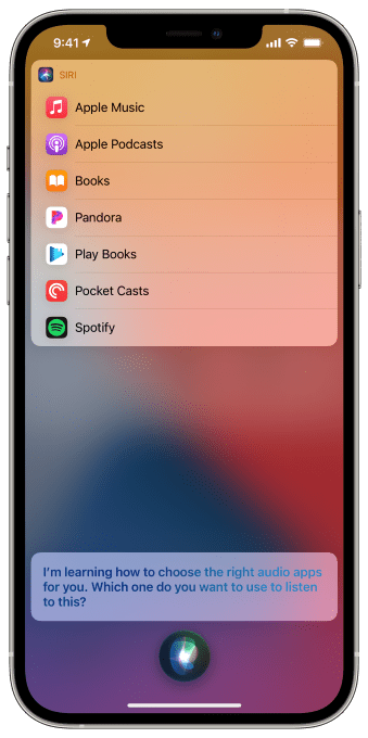More broadly, the feature is an attempt to help Siri to learn the listening apps you want to use for different types of audio content — not just music. Perhaps you want to use Spotify to listen to music, but prefer to keep up with your podcasts in Apple Podcasts or some other third-party podcasts app. And you may want to listen to audiobooks in yet another app.