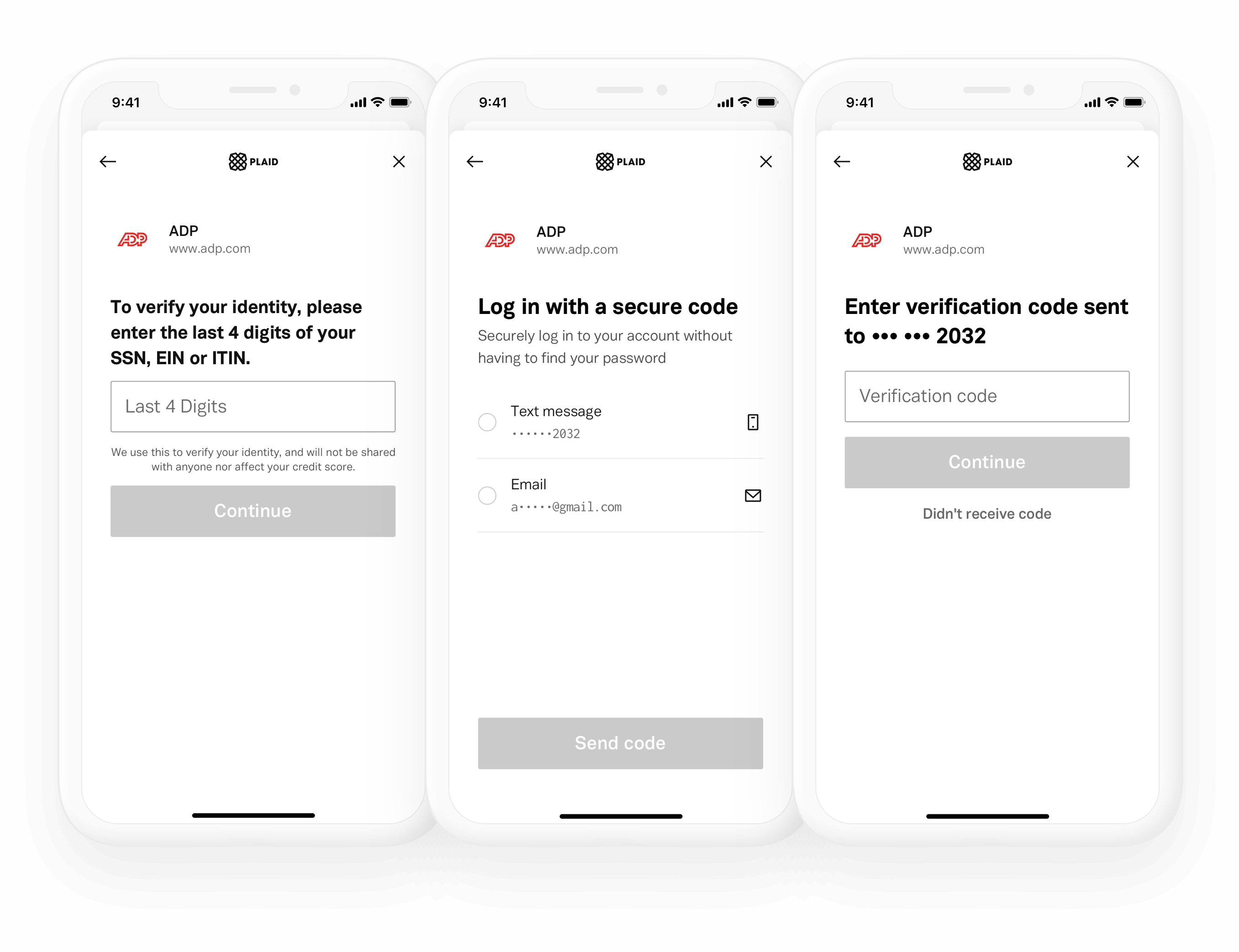 Using Plaid Link, applicants have the choice to share their payroll information using one of two methods: