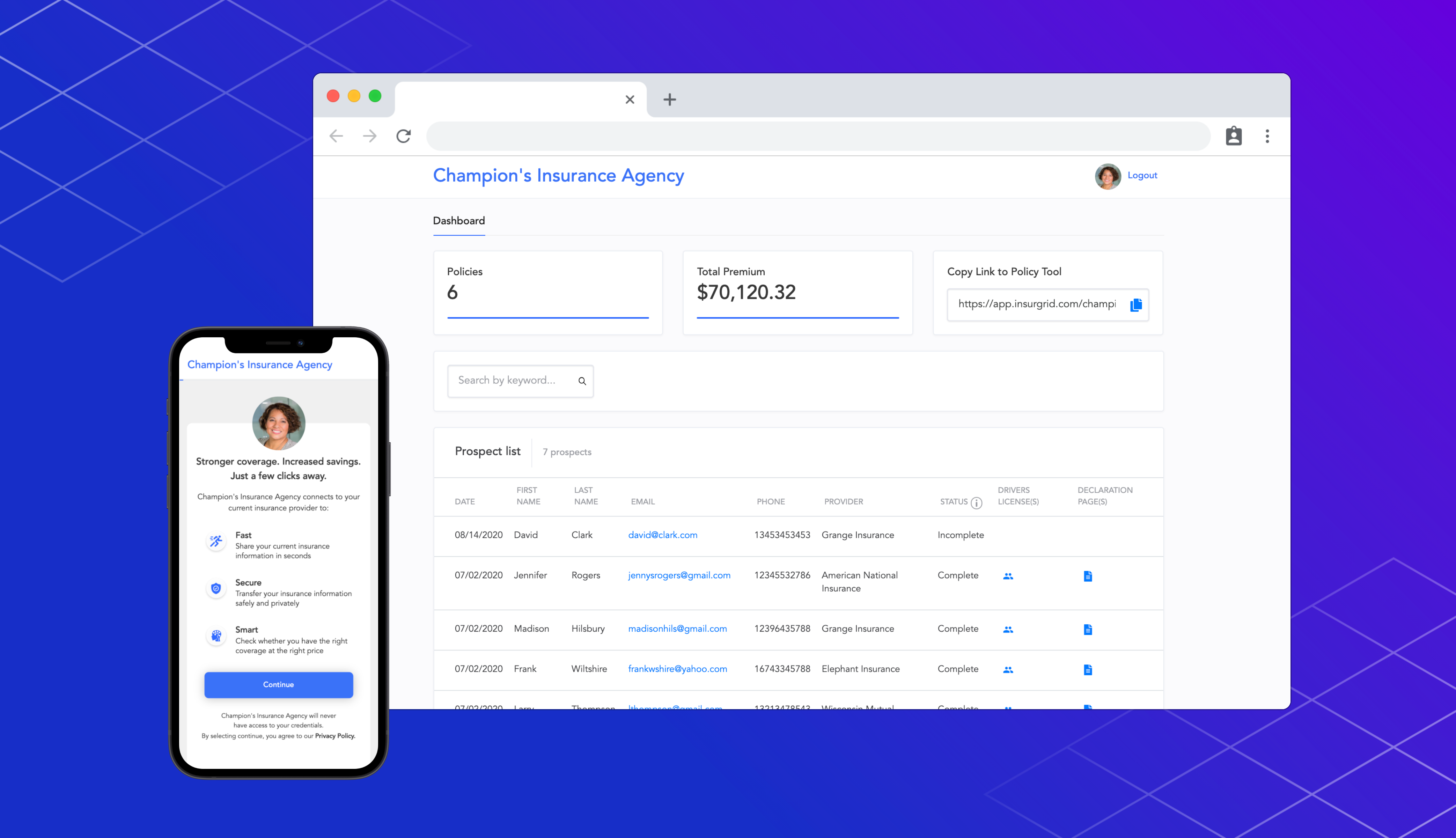 InsurGrid gives agents a personalized platform to collect information from clients, such as date of birth, driver’s license information and policy declaration. This platform helps agents avoid sitting on long calls or managing back-to-back emails, and instead gives them one spot to understand how all their different clients function. It is starting with property and casualty management.