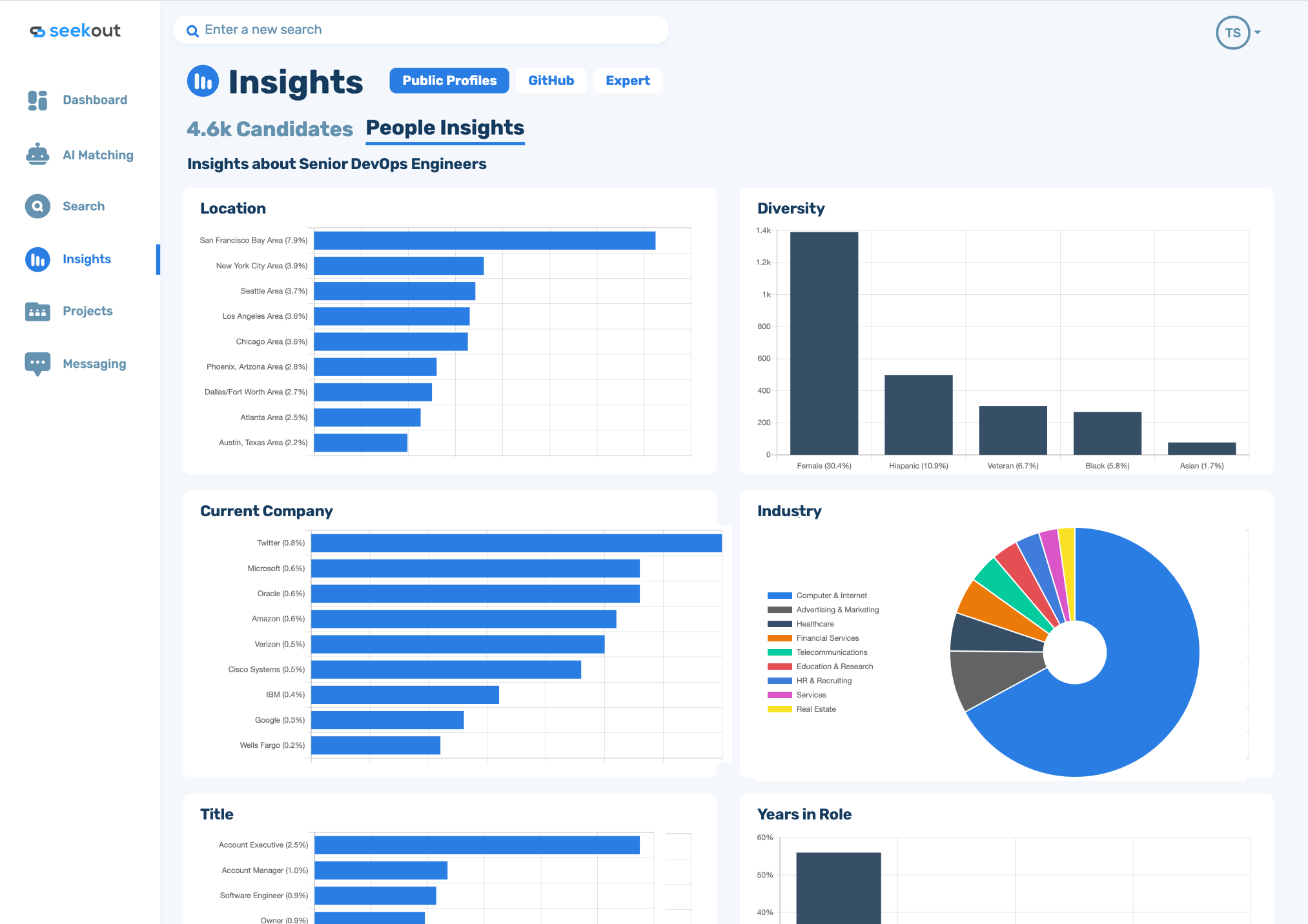 Over the years, SeekOut has built out a database with hundreds of millions of profiles using its AI-powered talent search engine and “deep interactive analytics.” It finds talent by scouring public data and using natural-language and machine-learning technologies to understand the expertise of each candidate to build a complete 360-degree view of each potential employee. Specifically, it blends info from public profiles, GitHub, papers and patents, employee referrals, company alumni and candidates in ATS systems.