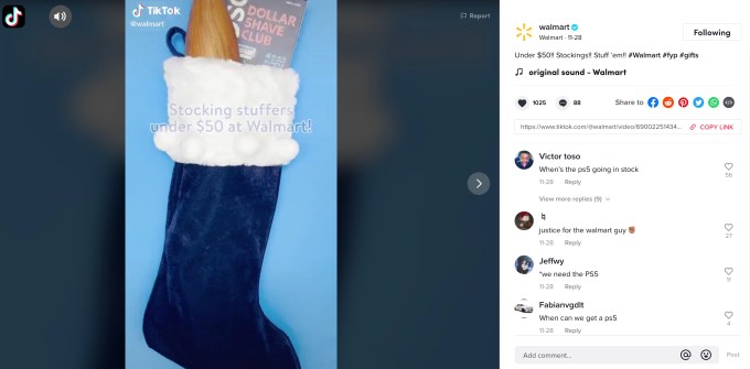 Walmart had already signaled its interest in leveraging TikTok for e-commerce ahead of the holiday livestream. Notably, it had planned to invest in TikTok when the video app was threatened with a ban under the Trump administration, unless it sold its U.S. operations to an American company. That forced sale, which would have spun out TikTok’s U.S. business to new owners Oracle and Walmart, is shelved for the time being as the Biden administration reviews the agency action under Trump.