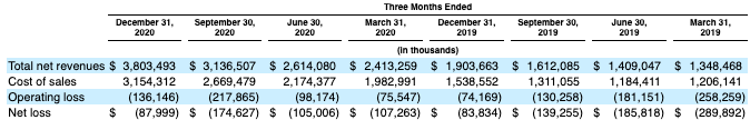 The upper-left area is where to find the most recent revenue figure: $3.8 billion in Q4 2020, which yields an annualized run rate of $15.2 billion. That may sound high compared to the company’s valuation, but, after all, if Coupang were a software company, it would be worth hundreds of billions.