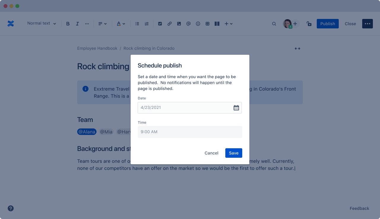 Baryshnikova tells me that the team took a close look at how content production, management and delivery works in the social media world. But some of the new features are also purely a reaction to a changing work environment. Take the ability to schedule when pages are published, for example. Employees who work from home may work especially late or early right now, for example, in order to prioritize childcare. But they still want the content they produce to be seen inside the company, and that can be hard when you would otherwise publish it at 11 p.m., for example.