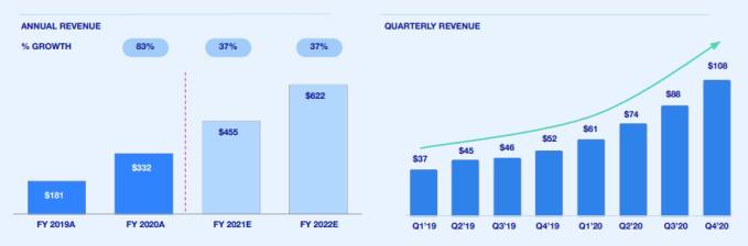 Notice anything weird about those numbers? You should: The company’s Q4 annualized run rate of $432 million is generating nearly the same multiple as the company’s expected 2021 revenues. Or, more simply, the company’s Q4 2020 was likely around the same result that ironSource expects to manage every three months in 2021; growth on a sequential basis is going to slow down sharply, the company expects.
