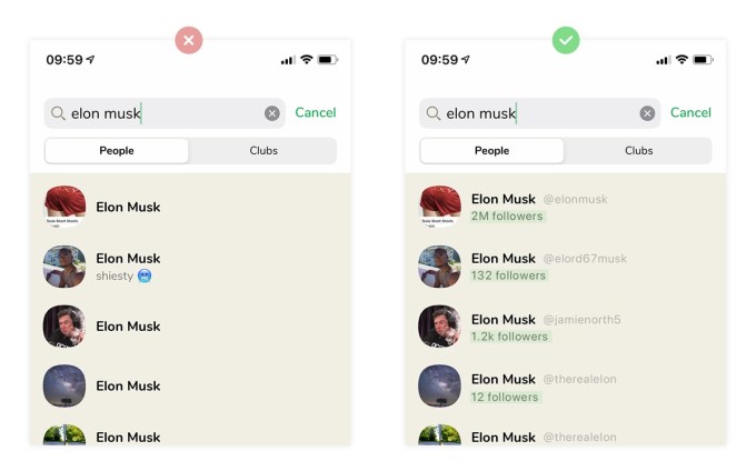 Pete: Following the right people on Clubhouse is necessary to find interesting conversations, so it’s important to know that you’re following real people — e.g., the real Elon Musk.