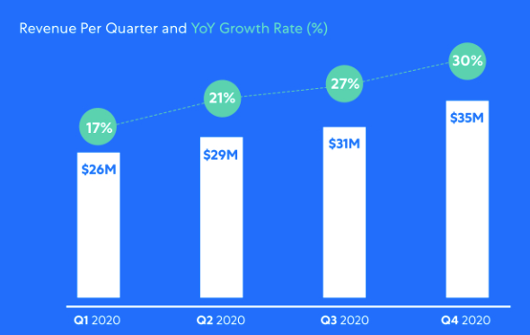What can we see here? Accelerating revenue growth during 2020. This chart also explains the timing of Kaltura’s IPO; you want to go public while your growth story is bulletproof. That chart is pretty excellent for giving investors FOMO; after all, if you don’t buy in now, what if growth accelerates further in Q1 2021 and you’re left having to buy in after the stock rises?