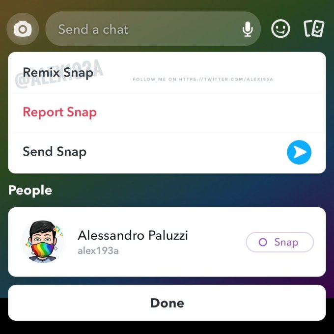 It appears that users will be able to access the “Remix” feature from the same menu where you can today either report a Snap or send it to others.